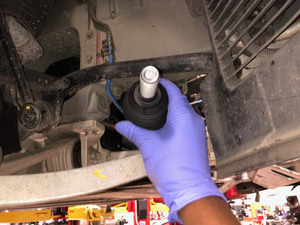 Note1x nut, 21mm, 103 Nm, Prevent ball joint damage from spinning by holding the ball joint pin with counter force to the nut, Discard after removal