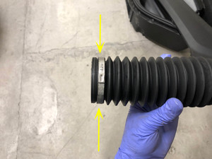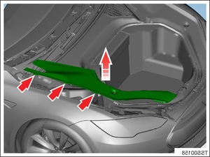 NoteThe tie rod band clip can be secured from the frunk area. If required, rotate the band to properly access the ear clip