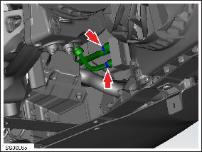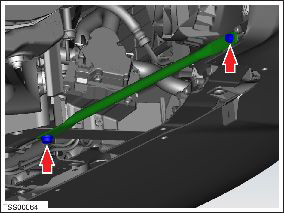 - Remove bolts (x2) securing front bumper panel support bar and remove (torque 11 Nm).