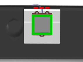 - Peel the backing material from the bottom of the antenna and affix the antenna to the mounting surface in the location shown.