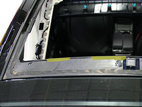- Use a plastic trim tool or other thin non-abrasive tool to release the satellite antenna from the roof crossmember.