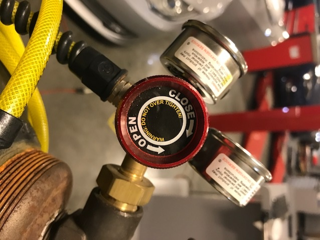 - Open the main valve on the Nitrogen bottle and verify pressure is above 500 psi (34 bar) and below the maximum allowed limit for the bottle.