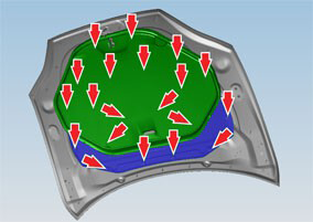 Carefully release the clips (x14) that secure the hoodliner to the hood.