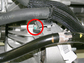 - Release the clip that attaches the low voltage harness to the coolant hoses.