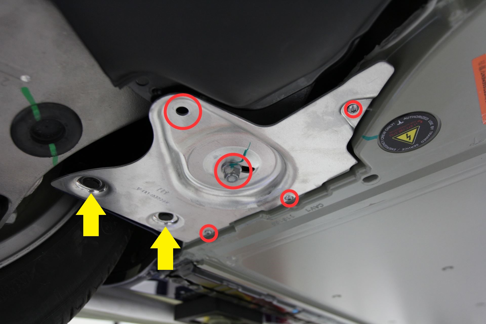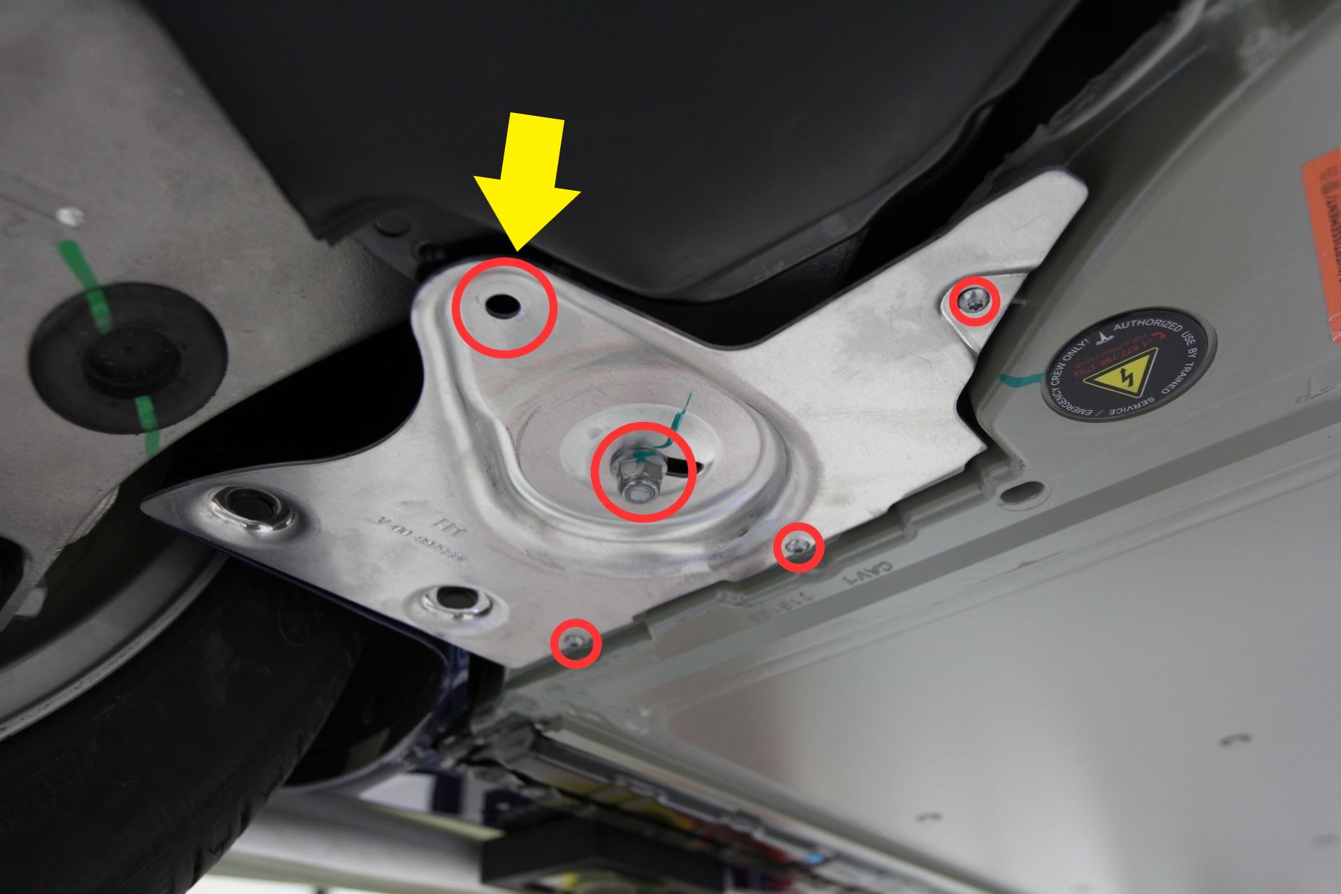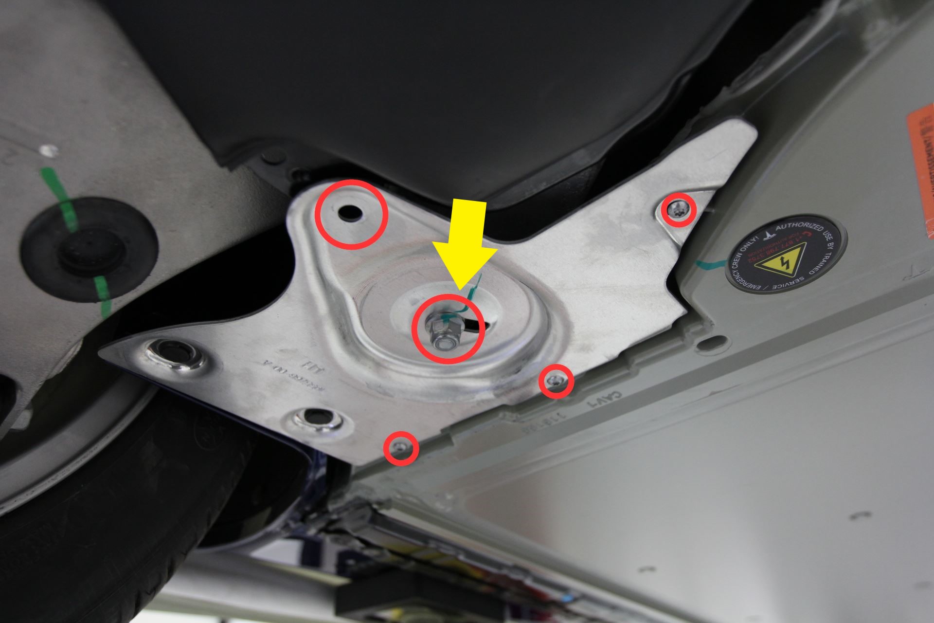 - Remove the bolt that attaches the LH shear plate to the vehicle (torque 4 Nm).