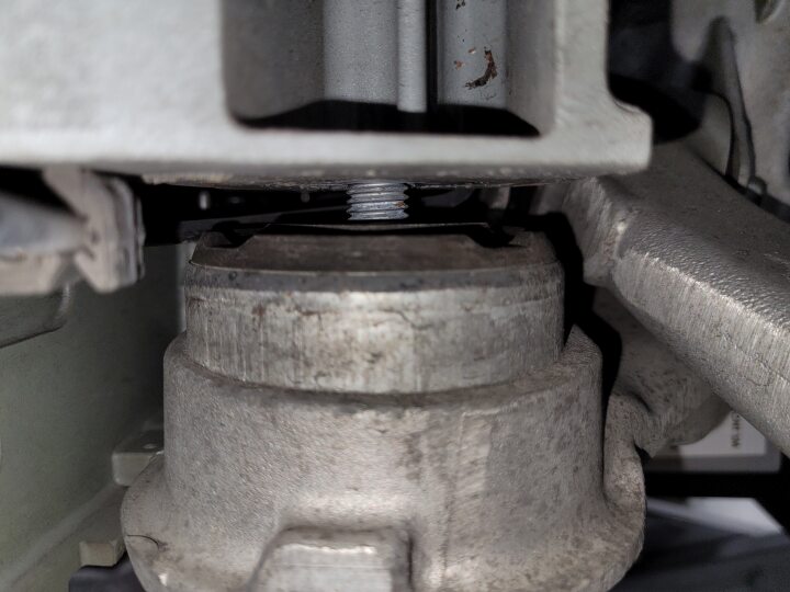 - Install the bolts (x4) that attach the subframe to the vehicle (torque 140 Nm).
