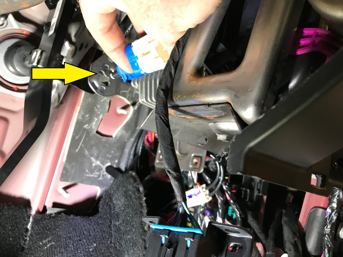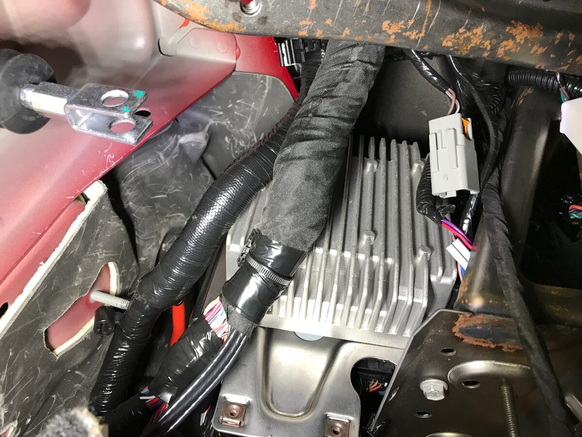 Release the main harness clip from the bulkhead and move harness away from the tuner
