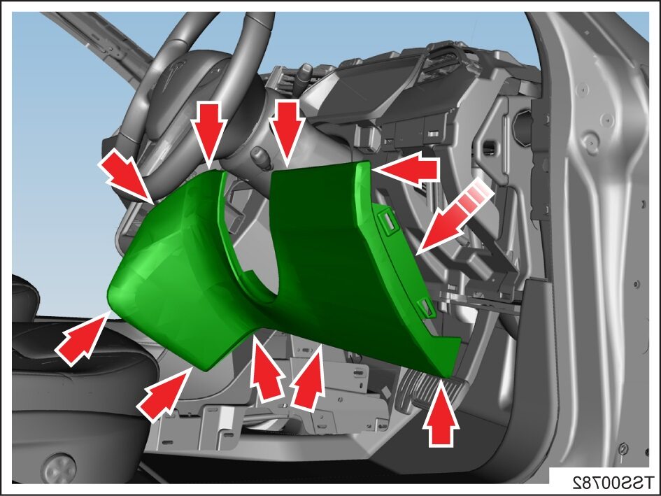 Note2x screws, T25, 7 Nm, The screws will remain inside the steering wheel, If required rotate the steering wheel to gain access to screws, Afterwards return steering wheel to straight and center position