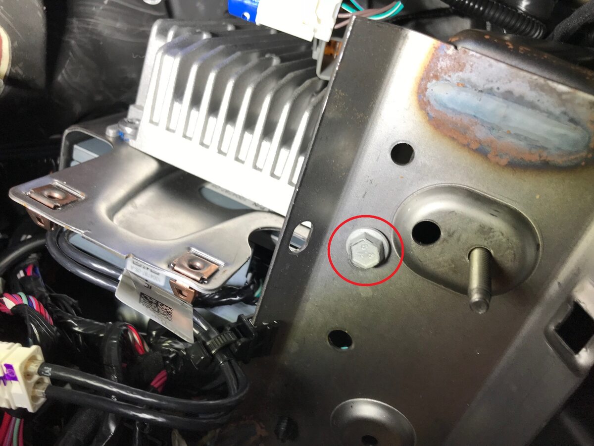 Remove the amp/tuner bracket assembly out through the bottom of IP carrier