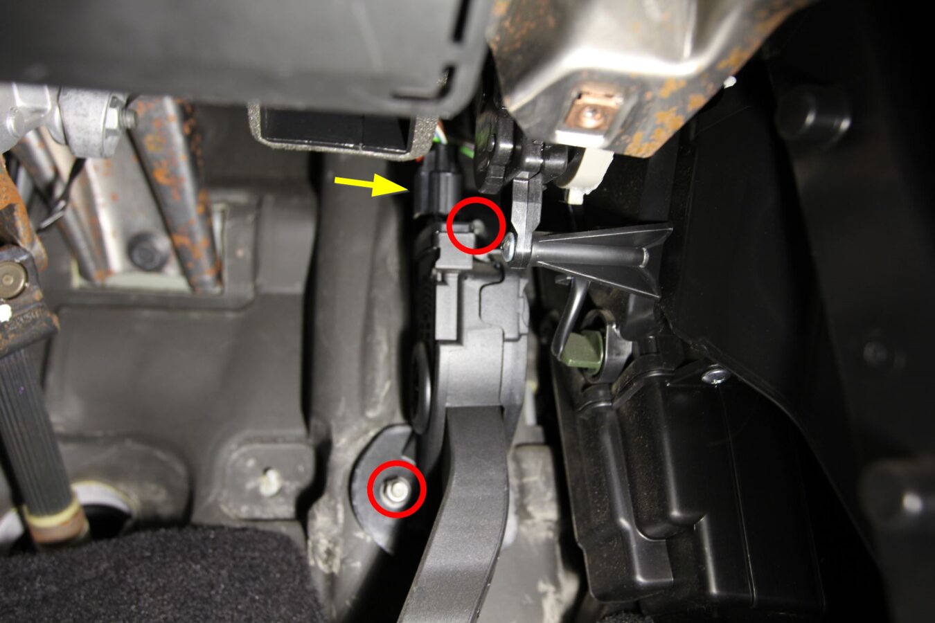 NoteRotate the pedal and bracket assembly at different angles to clear the cross car beam and master cylinder push rod, Take care not to damage the boot around the push rod during installation