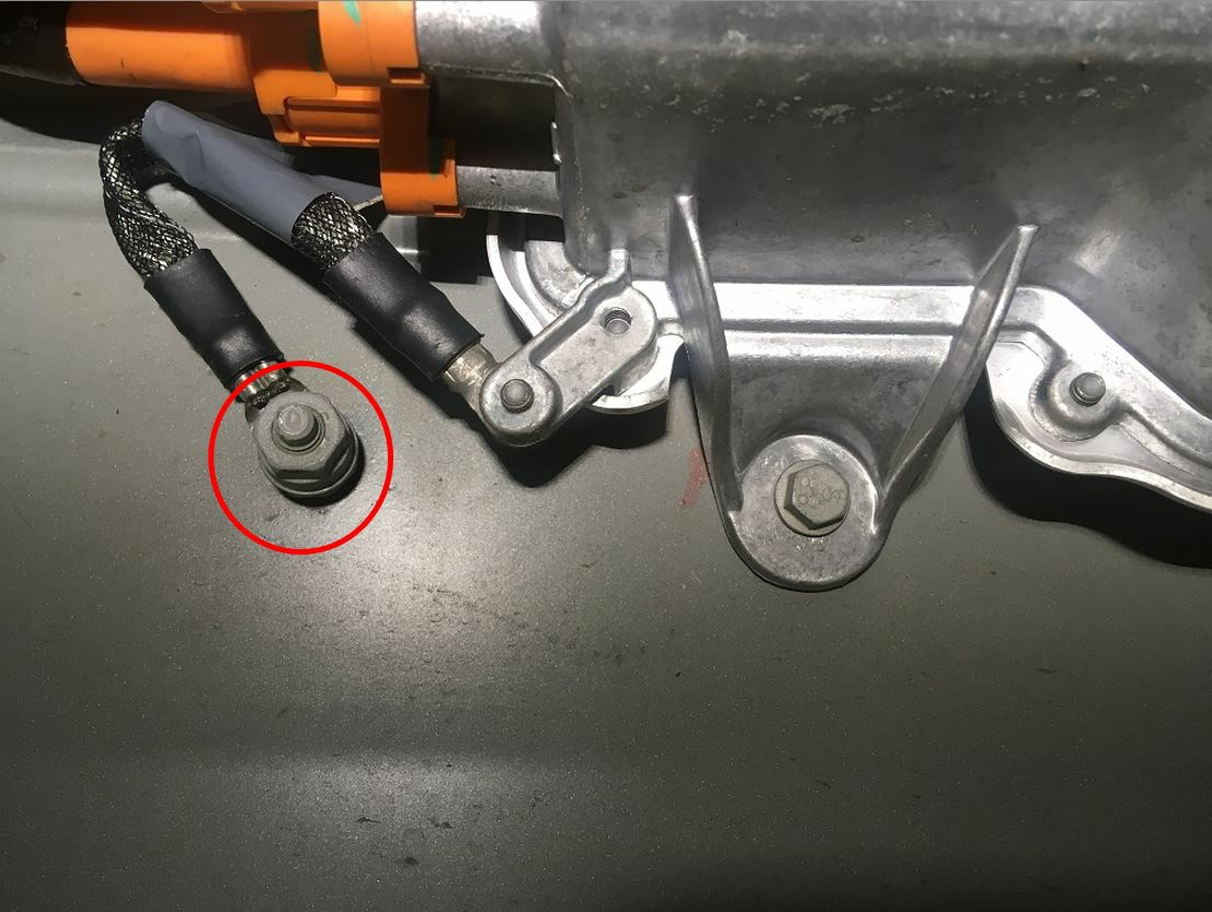 - Release the clip that attaches the HV harness to the bulkhead, allowing the HV harness to be moved out of the way for the front harness to pass behind the HV harness during removal.