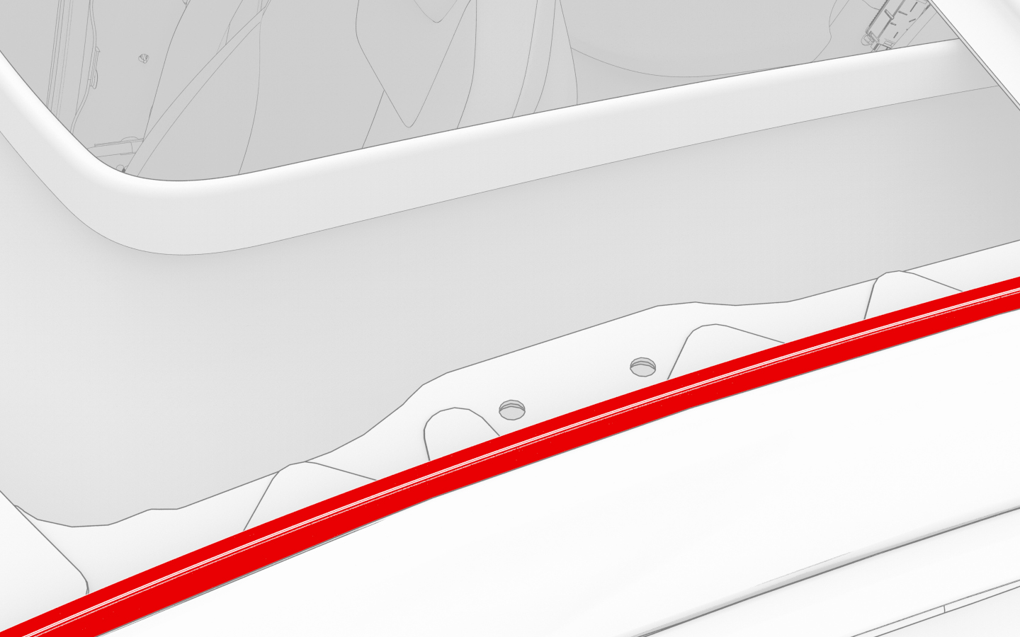 - Use a plastic trim tool to fully seat the fixed glass roof seal under the windshield seal.