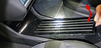 - Gently pry against the center console until the Dual Lock on the underside of the floor finisher is released.