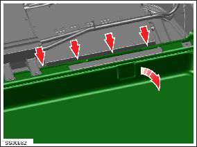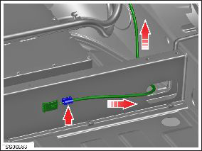 - Release the carpet and sound insulation from the rear seat mounting cross member to gain access to the latch manual release lever and cable.