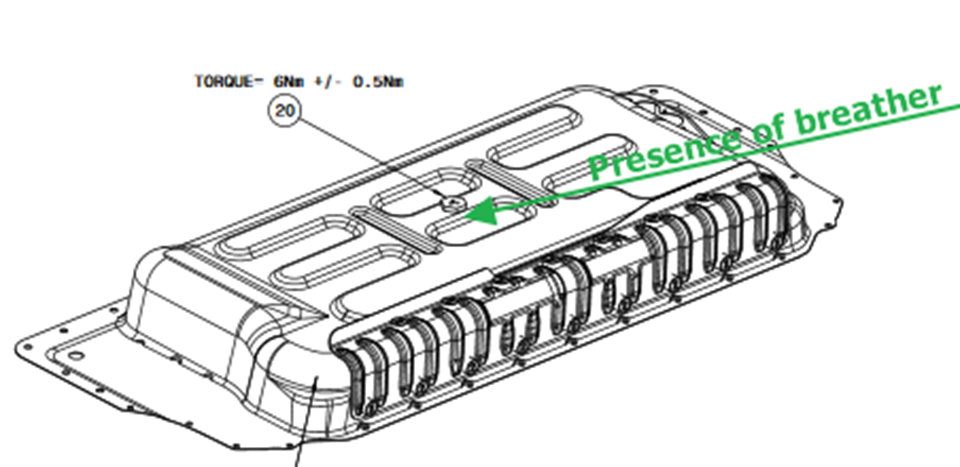 If the HV battery does not have a breather on the newer bump cover (1055910-01-E), only install the newer umbrella valves.