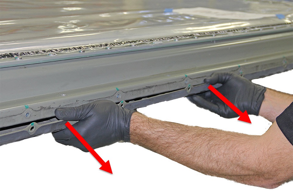 This procedure shows pictures of the side rail ski on HV Battery 1.0/1.5. The procedure for HV Battery 2.0 is identical.