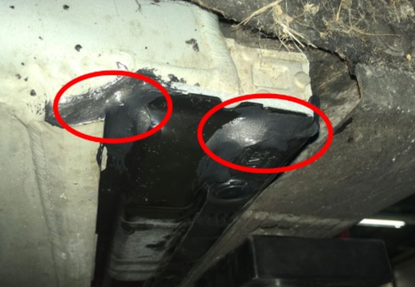 Remove and discard the 2 front bolts (torque 12 Nm).
