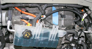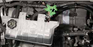 - Carefully lift up the coolant reservoir and disconnect the coolant level sensor harness.