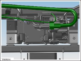 - Ensure that the HV cable is routed under the suction and discharge lines and that the clip is installed onto the suction line.