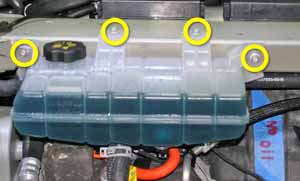 Release the 4 bolts that secure the coolant reservoir to the front