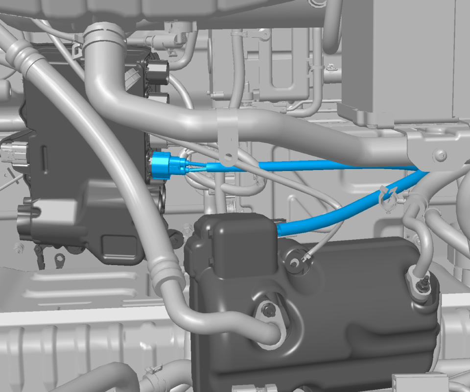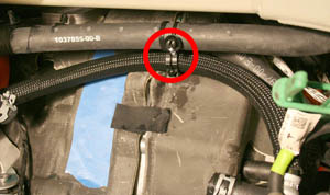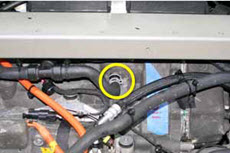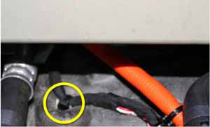 - Ensure there is sufficient clearance between the HV connector and the bottom of the underhood storage compartment. If there is contact, the position of the bracket that supports the HV connector may need to be adjusted.