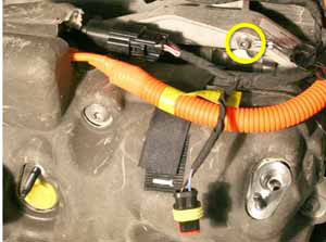 - Release the fir tree clip that secures the LV harnesses to the top of the front drive unit.