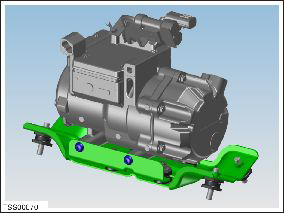 - Release the fasteners that secure the compressor to the bracket (torque 20 Nm).