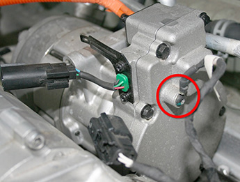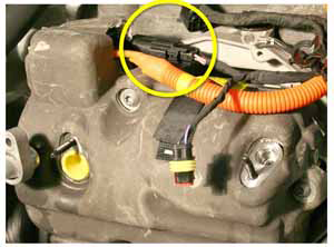 Disconnect the HV and LV harness connectors from the compressor.