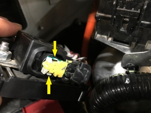 - Install a new nyloc nut that attaches the fuse box to the battery strap, making sure the gaskets are touching the top of the battery and support the pyro fuse studs.