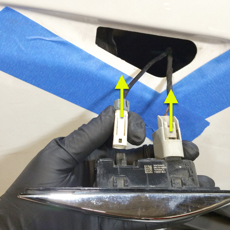 - Connect the RH repeater light connector and RH repeater coax cable connector to the new repeater assembly.