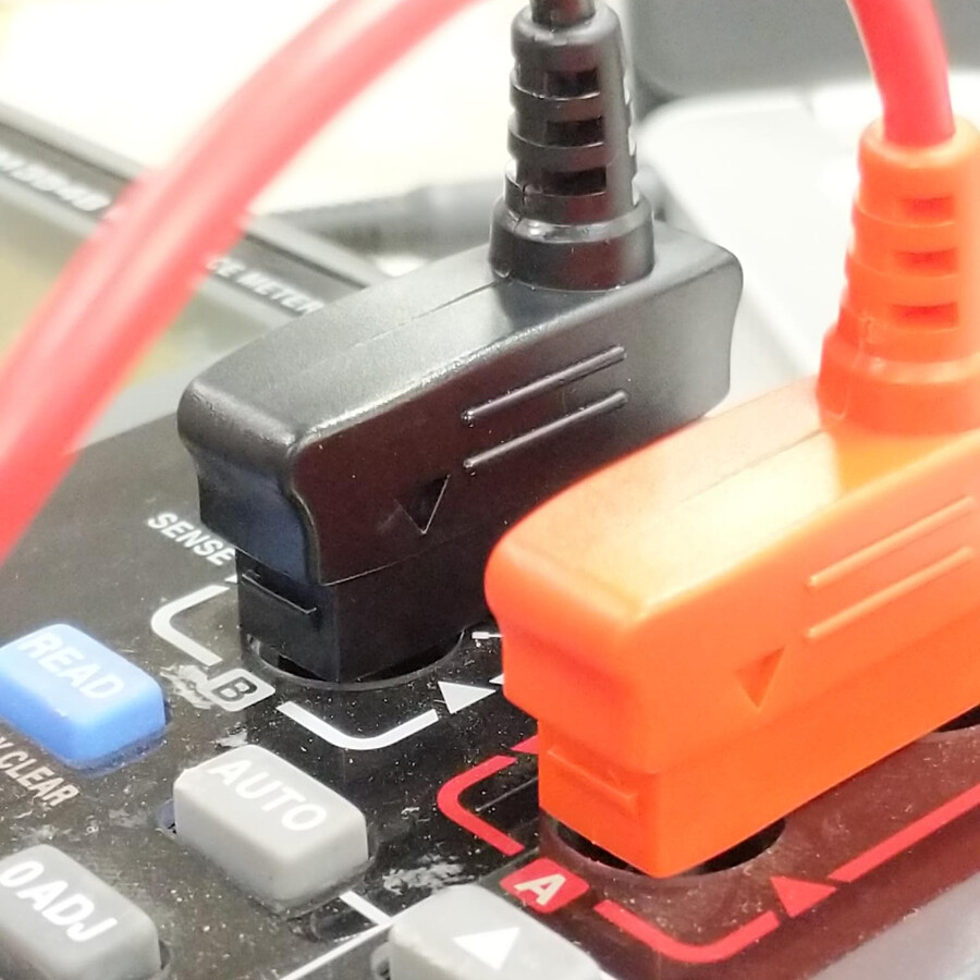 NoteBoth the positive (red) and negative (black) lead connectors have arrows or marks that align to arrows on the resistance meter.