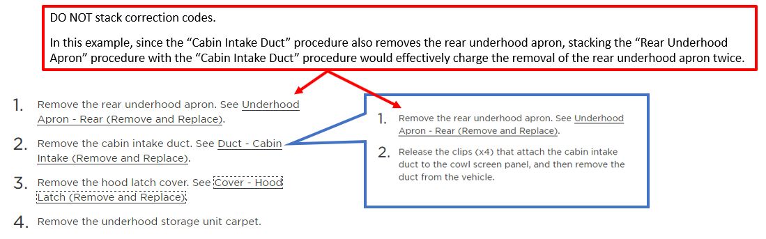 - Overlapping steps are accounted for and removed for efficiency and accuracy and to also focus on technician touch time of the repair procedure.