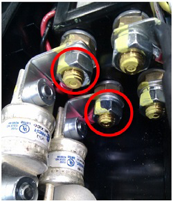 - Use a paint or ink pen to mark the torque position after reassembly, using a different color than manufacturing (manufacturing usually uses yellow). Use one continuous motion to mark the bolt, washer, nut, and bus bar.