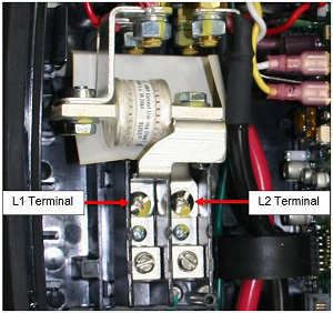 - Remove the screws that connect the bus bars to terminals L1 and L2.