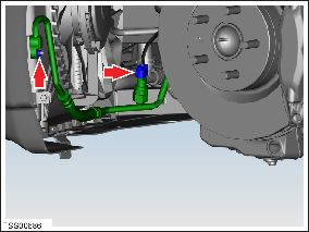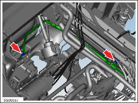 - Remove the nut that secures the high pressure pipe to the chassis rail (torque 6 Nm).