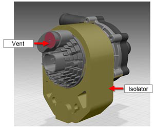 NoteThis line helps to align the isolator when installing it on the new coolant pump.