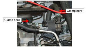 CAUTIONDo not remove the clamps that were placed on the inlet and outlet hoses in step 5.
