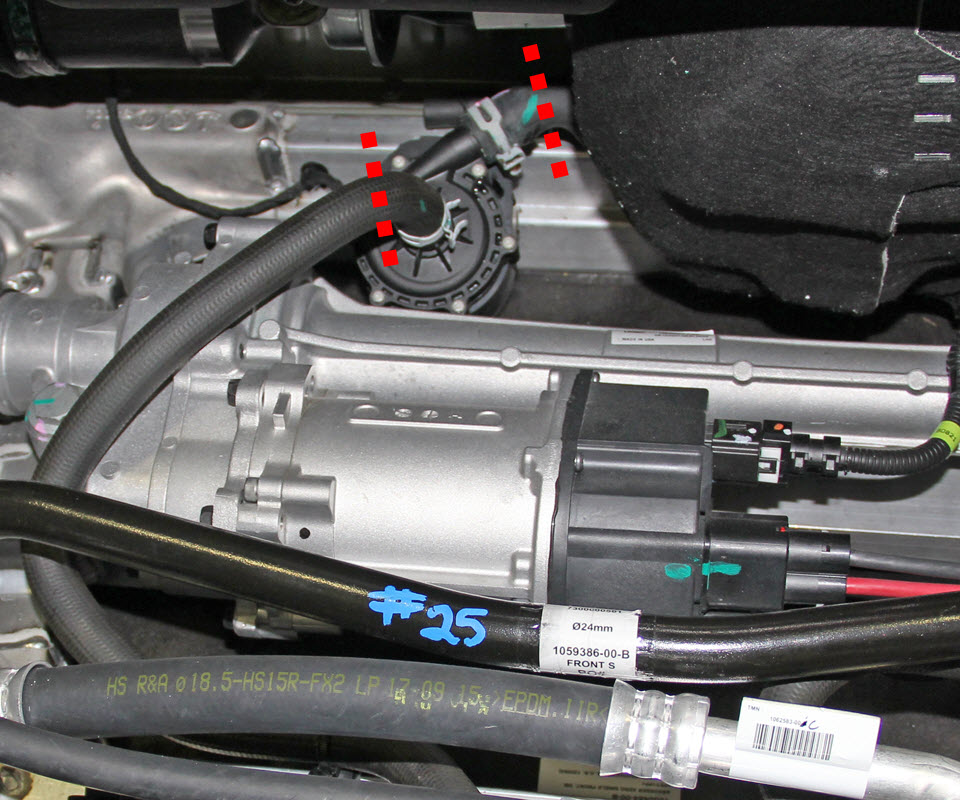 - Remove the inlet and outlet hoses from the coolant pump assembly.