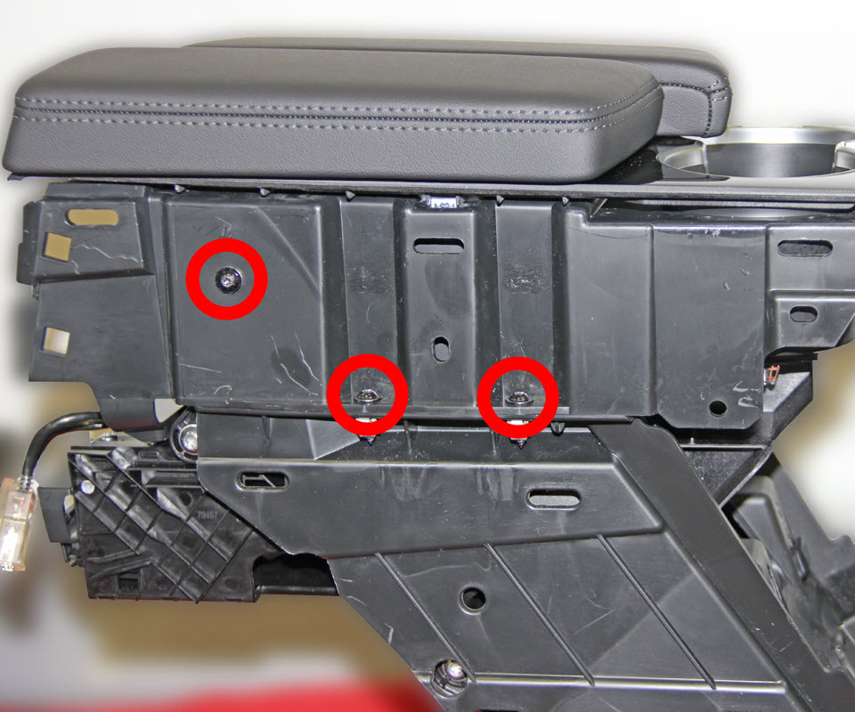 On each side of the center console, remove the screws (x3) that secure the