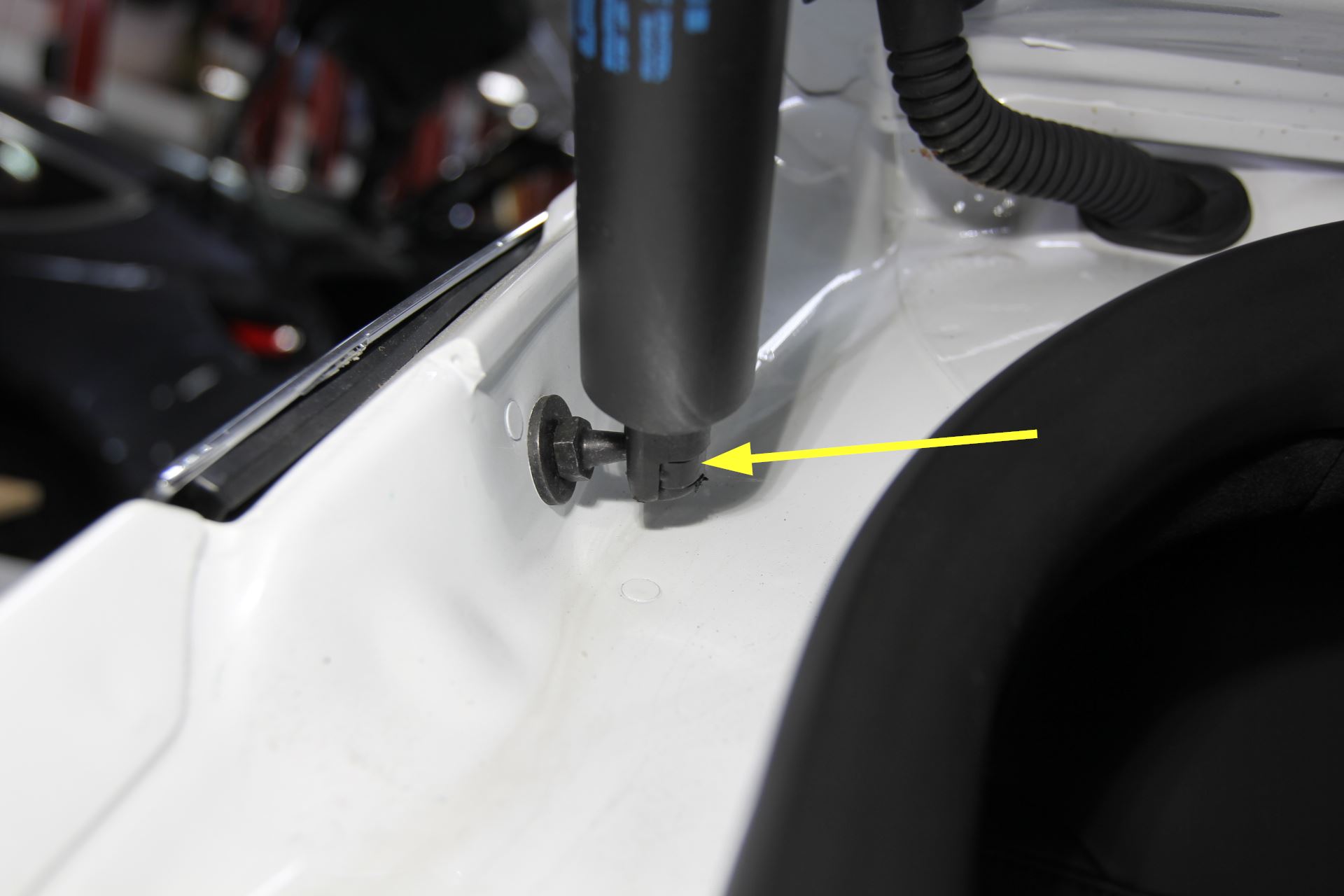 - Clean the strut ball studs on the hood and body (x2) with a clean rag.