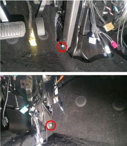 - Remove the dead pedal finisher and fold the LH carpet rearwards.