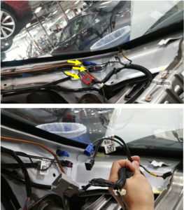 - Disconnect the headliner harness at the LH A-pillar and release it from the vehicle.