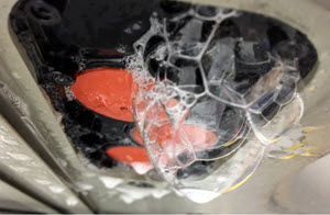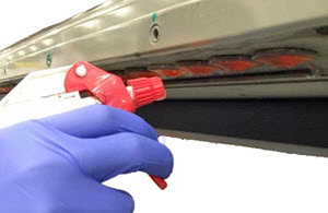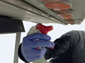 - If liquid leak detector was applied to any top cover surfaces (steps 8–12 of the “Leak Troubleshooting and Repairs” section of this document), use alcohol wipes to clean the top cover near the battery blanket attachment surfaces very thoroughly. Liquid leak detector leaves a residue on the surface that can reduce the adhesion of the butyl rubber adhesive on the battery blanket.