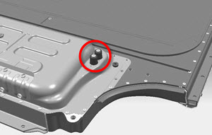 - Lower spline bolts: If leakage is found, install a new bolt with an M6 sealing washer (torque 12 Nm). The rubber surface of the washer must face toward the battery enclosure.