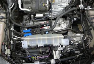 - Carefully lift up the coolant reservoir and disconnect the coolant level sensor harness.