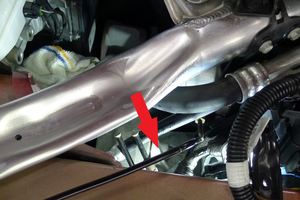 - Release the clips (x2) that secure the brake lines to the front crossmember.