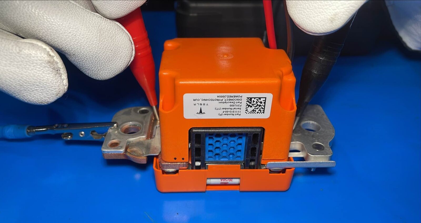 - If the impedance is less than 0.080 mΩ (80 μΩ) or more than 0.150 mΩ (150 μΩ), escalate a toolbox session for assistance and return the new fuse via MRB.