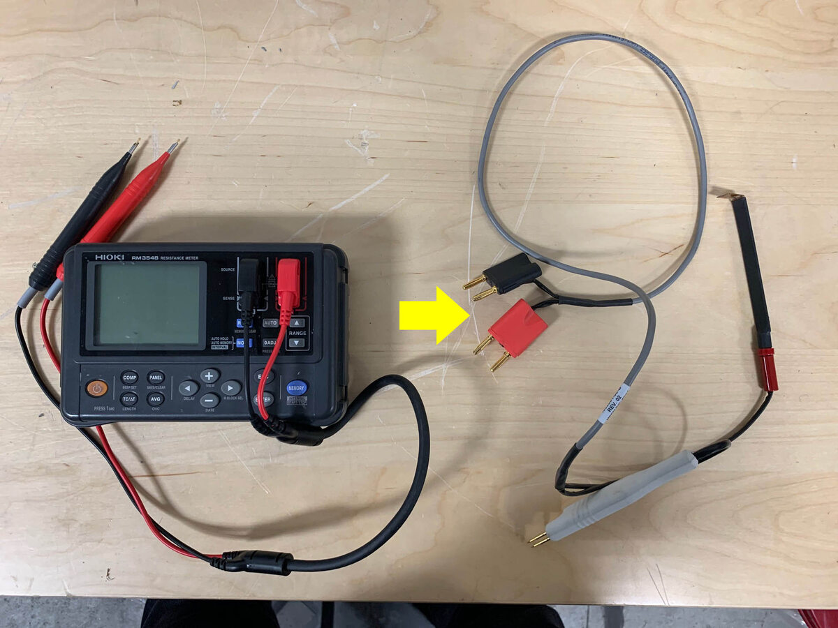 - If the impedance is greater than 0.150 mΩ (150μΩ), there is too much resistance in the High Voltage joint. Remove the fastener, clean areas with isopropyl alcohol, install fastener back and test again.