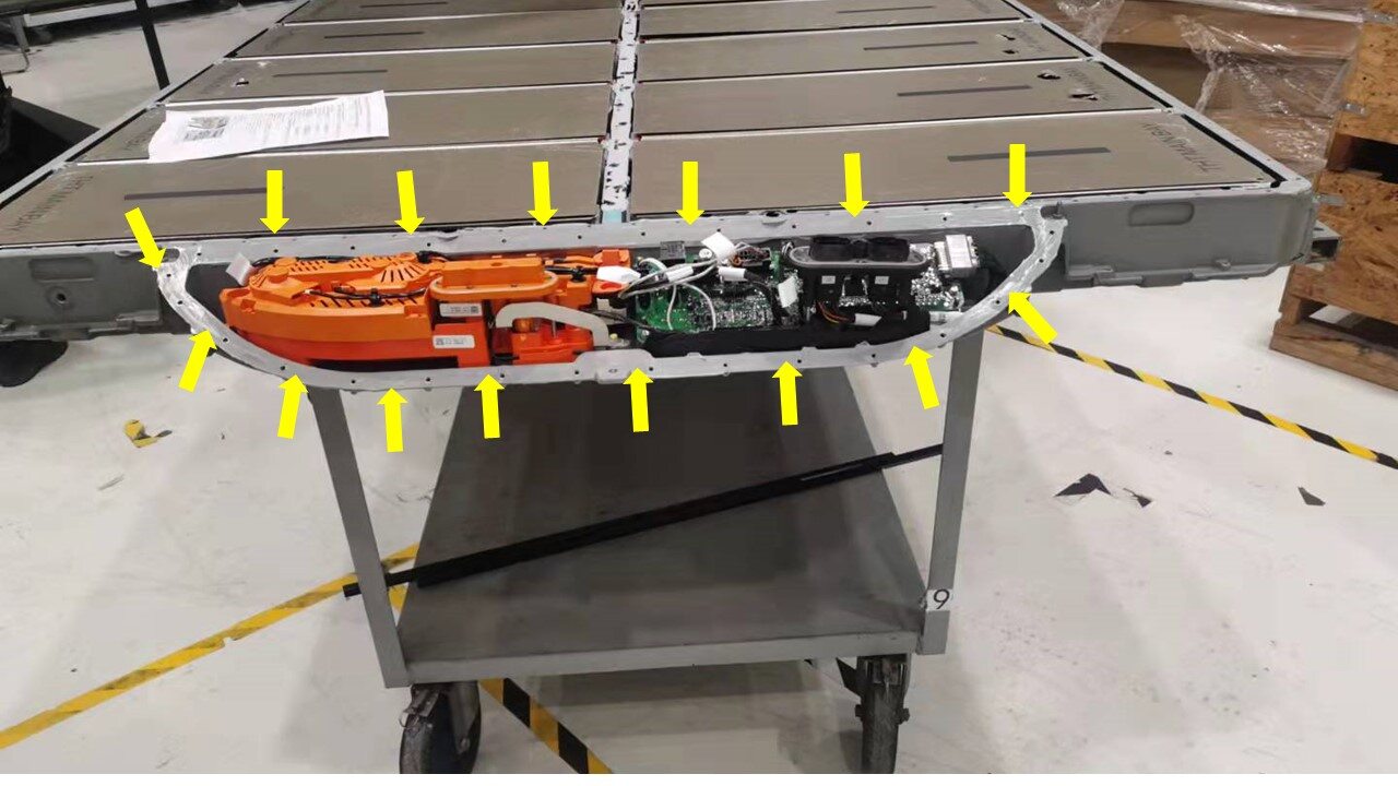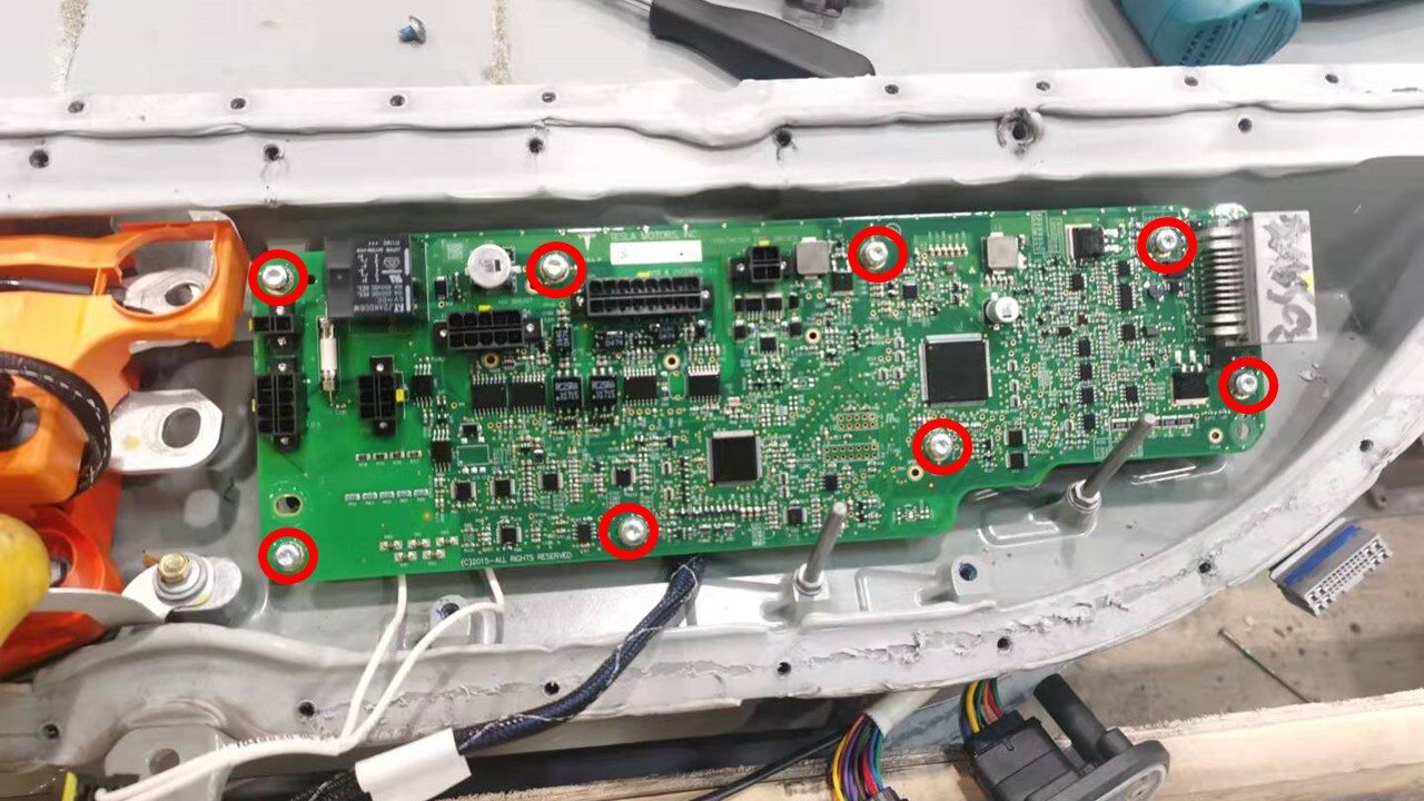 Remove the bolts (x8) that attach the BMS PCBA to the HV battery, and then remove the BMS PCBA.