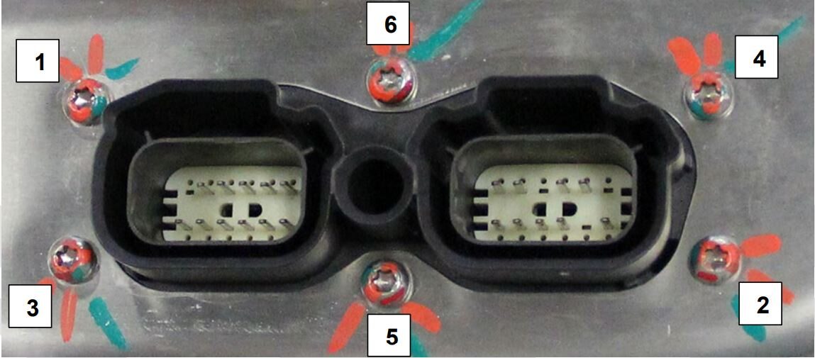 2.8 Nm (2.1 lbs-ft)NoteTorque the screws in specific order as shown. Use an orange paint pen to mark the head of each screw after it is torqued.Tip: Use of the following tool(s) is recommended:- Torx T25 socket